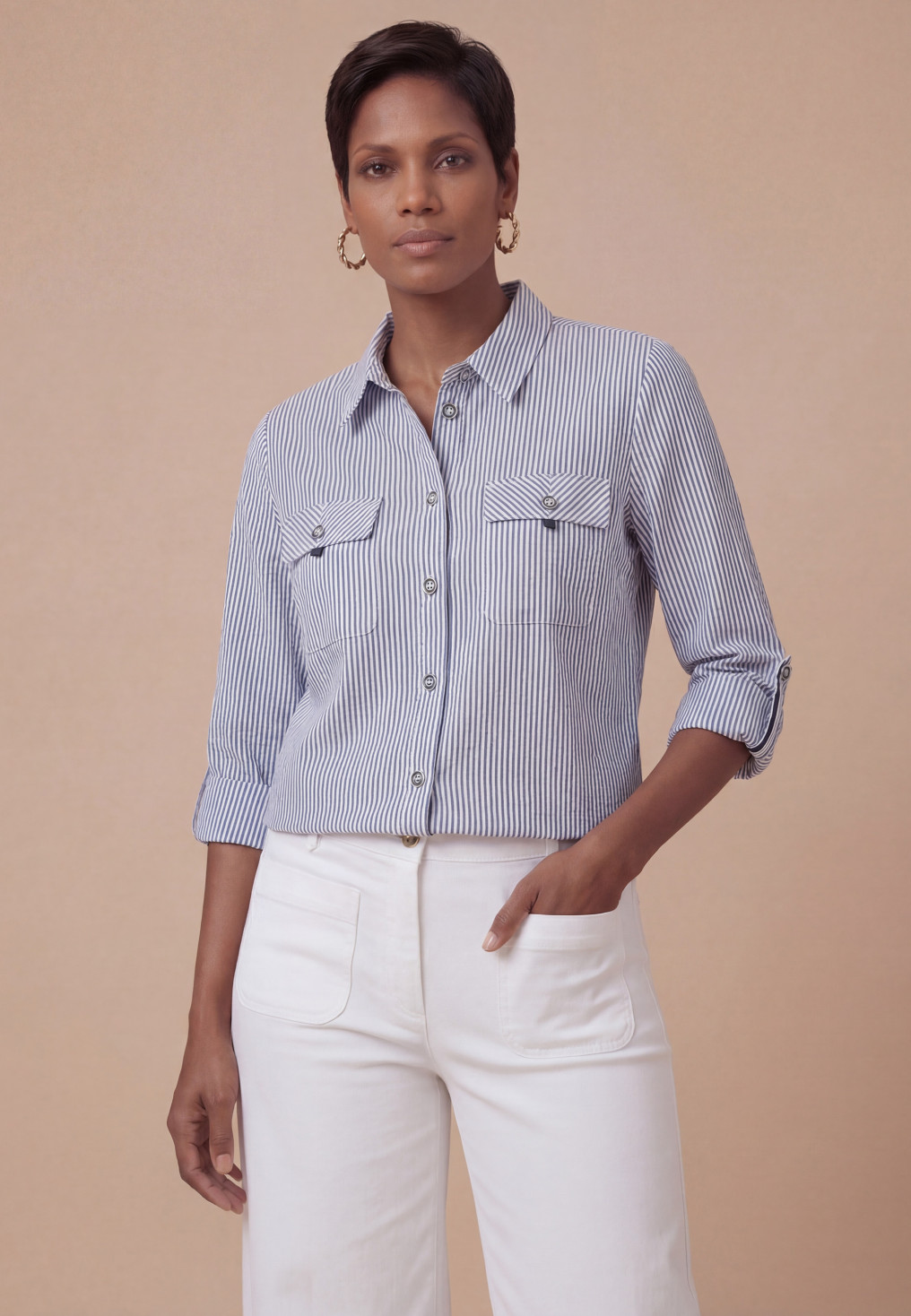 - Manches longues avec patte de boutonnage pour les porter en 3/4