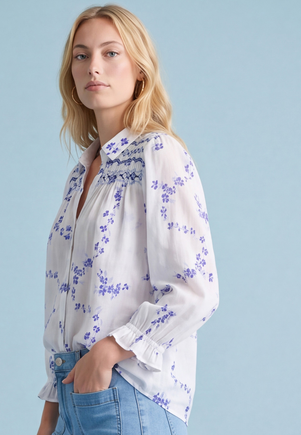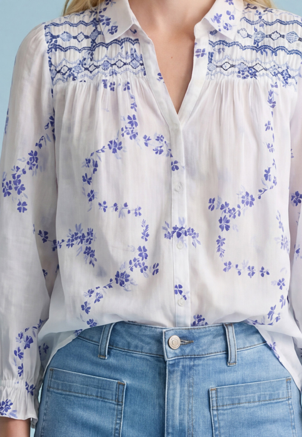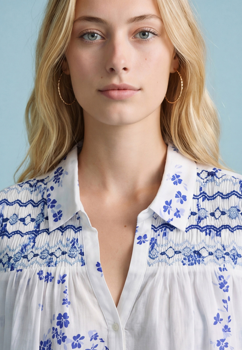 - Détail des smocks brodés sur les épaules