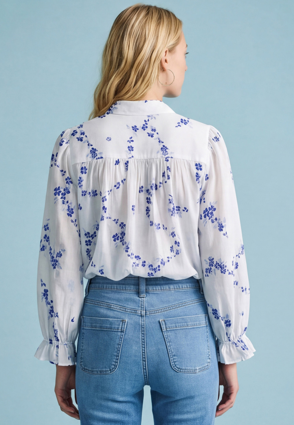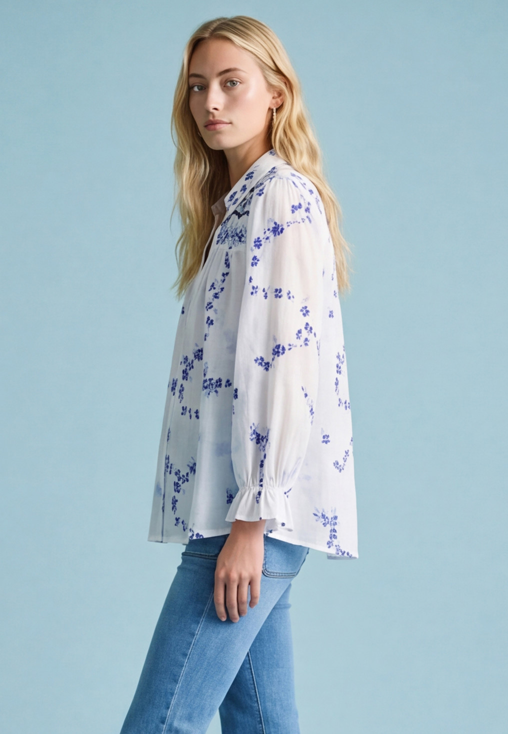 - Coloris white/bleu motif de fleurs