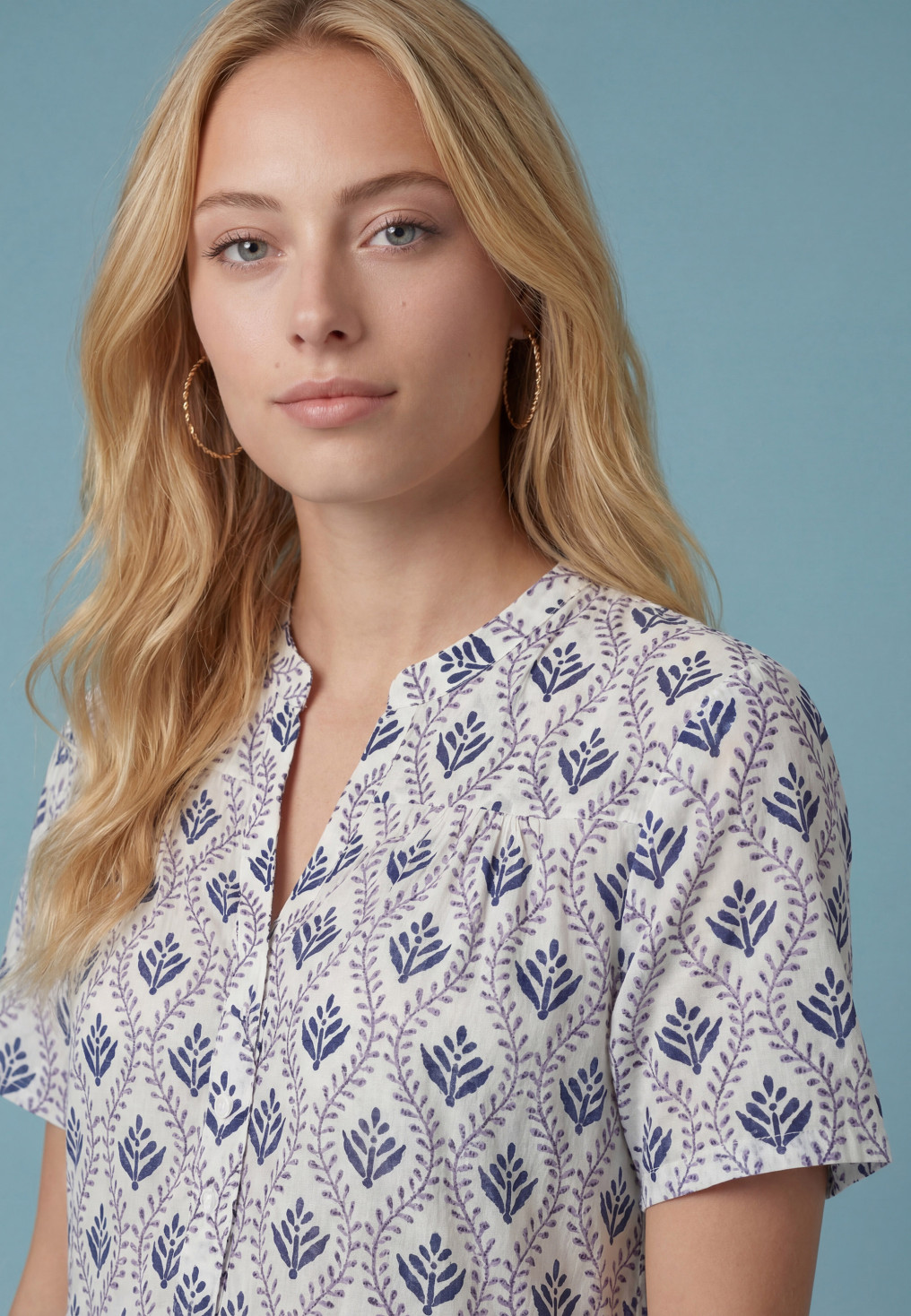 - Tissu 100% coton, motif de fleurs et feuillages stylisés