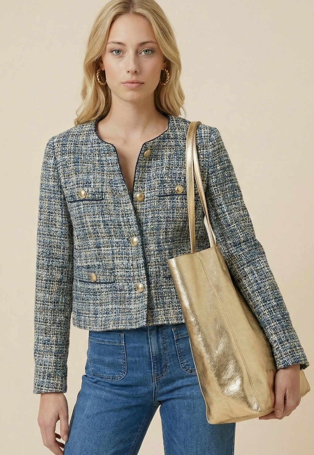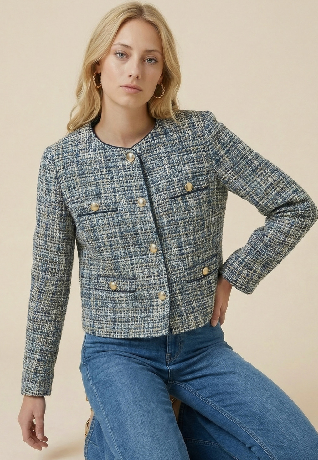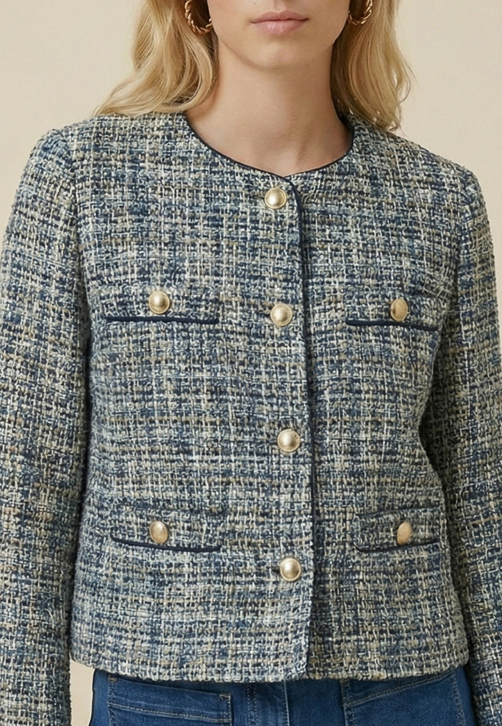 - Quatre poches (dont deux fausses) passepoilées avec bouton
