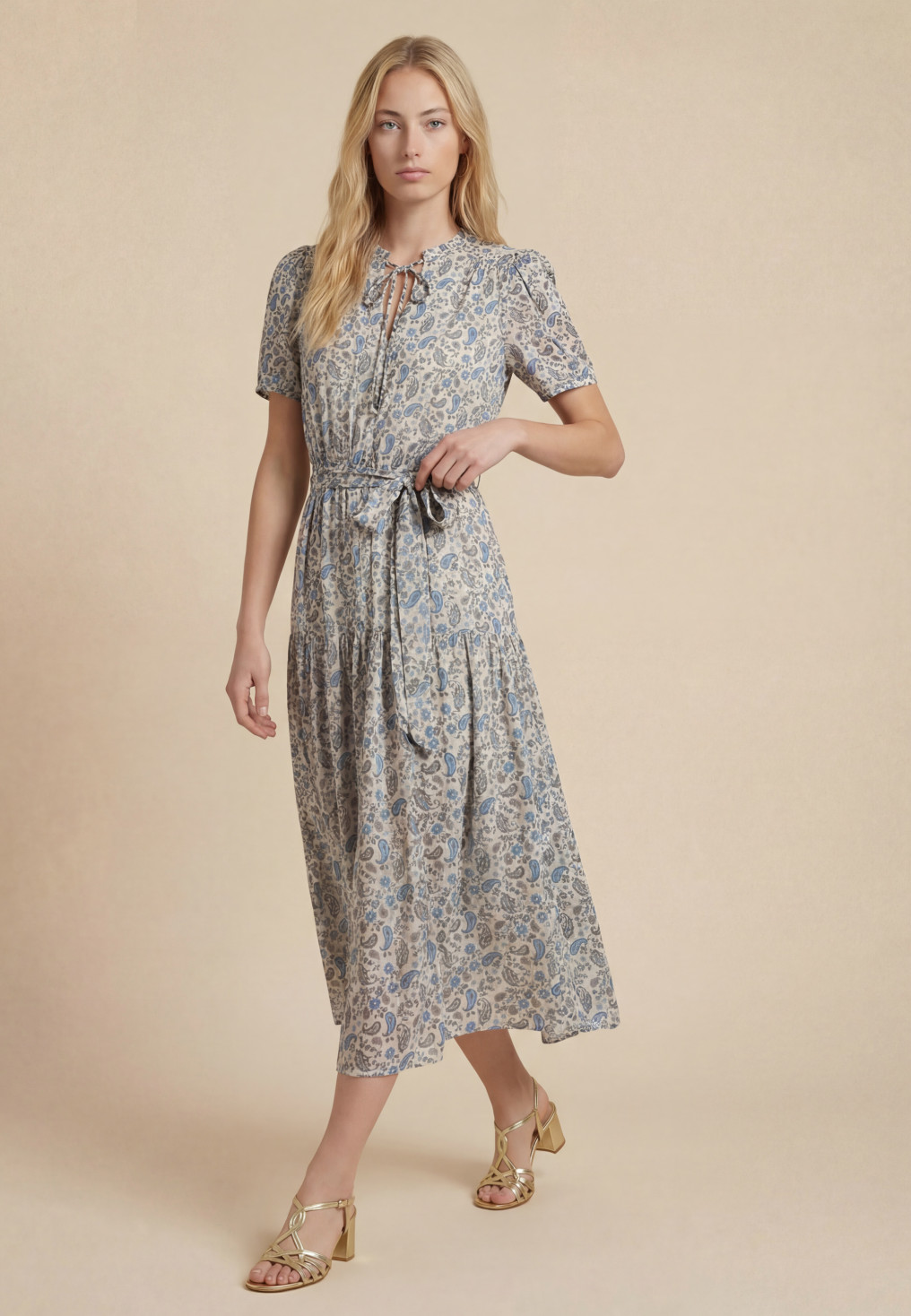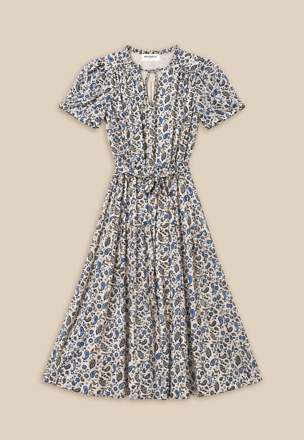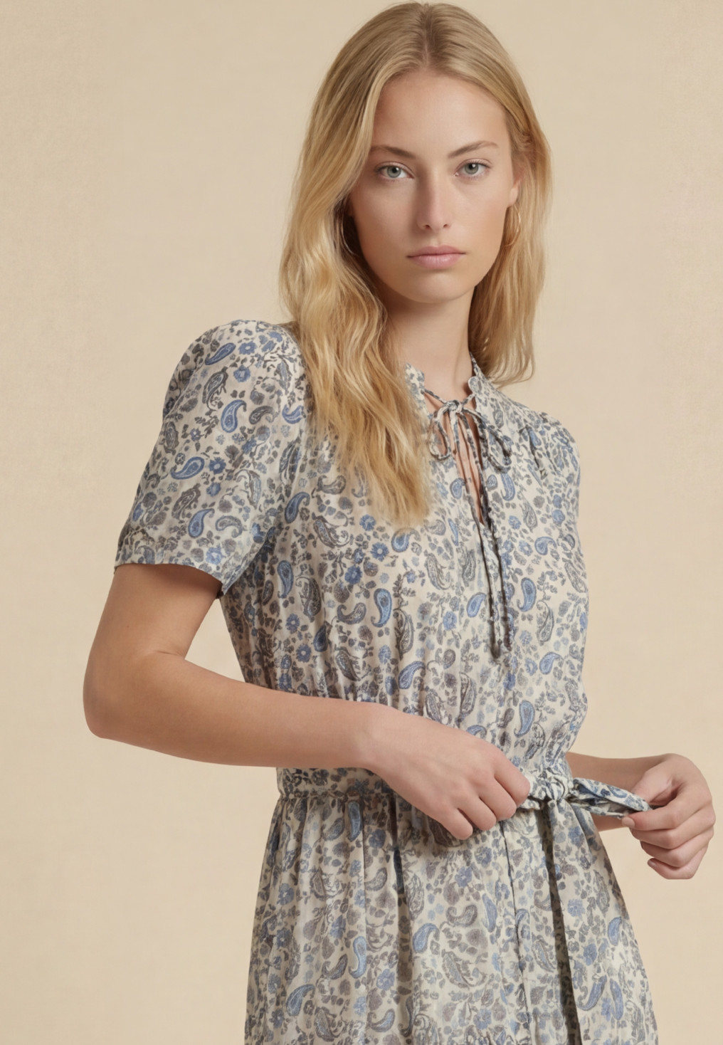 - Coloris sable/bleu, motifs cachemire