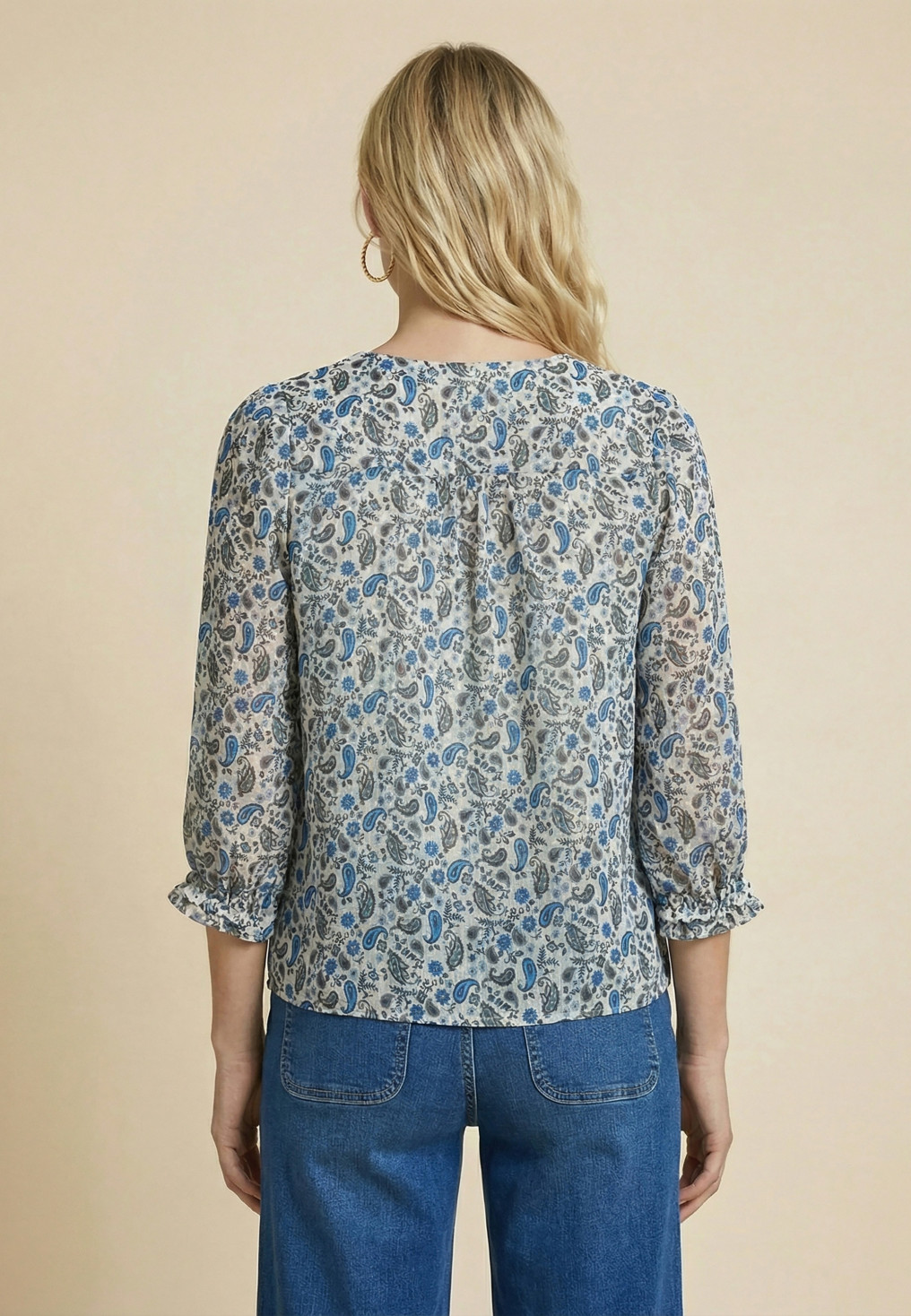 - Coloris sable/bleu, motifs cachemire