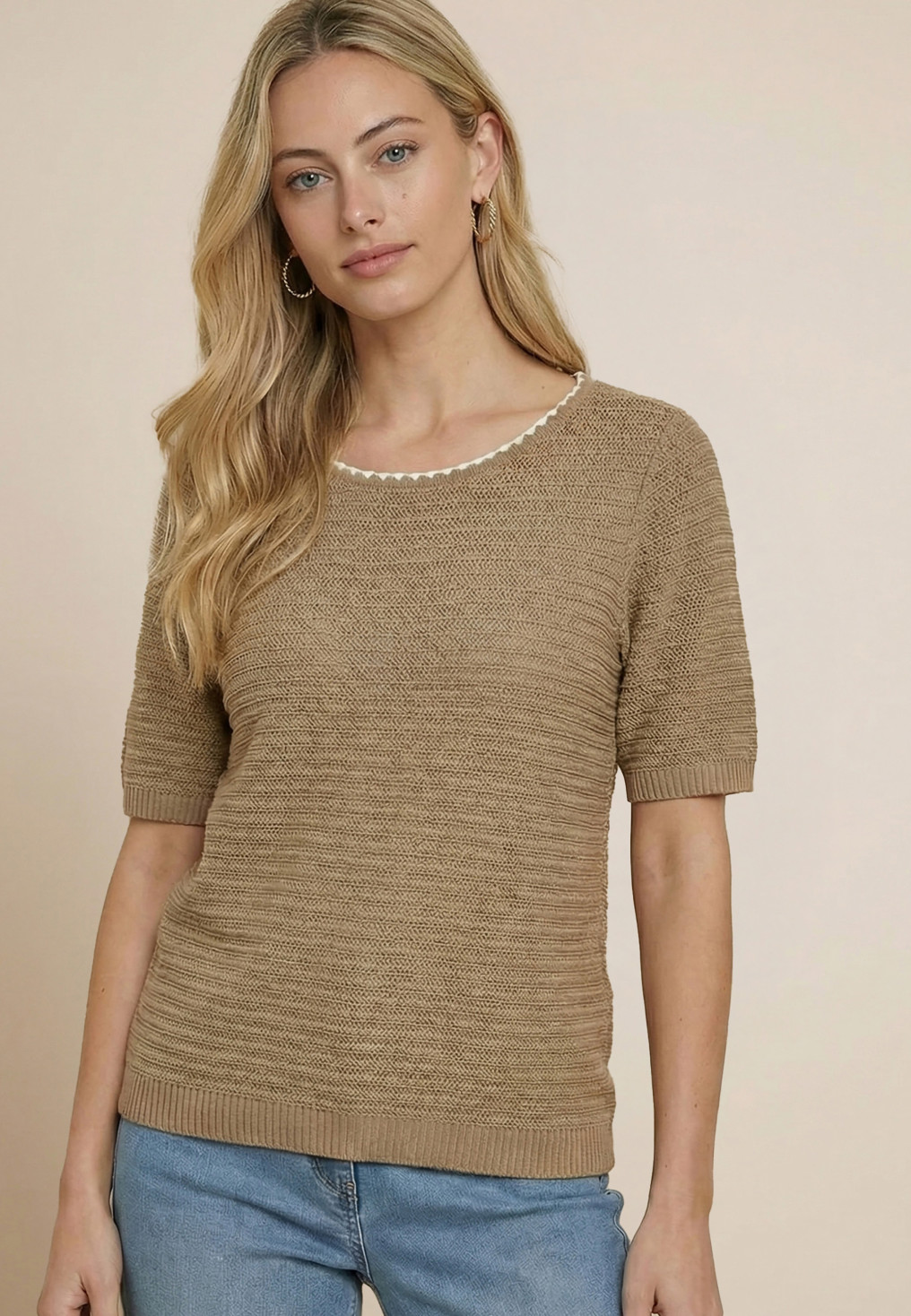 PULL MANCHES COURTES - SUZETTE - BEIGE/ECRU