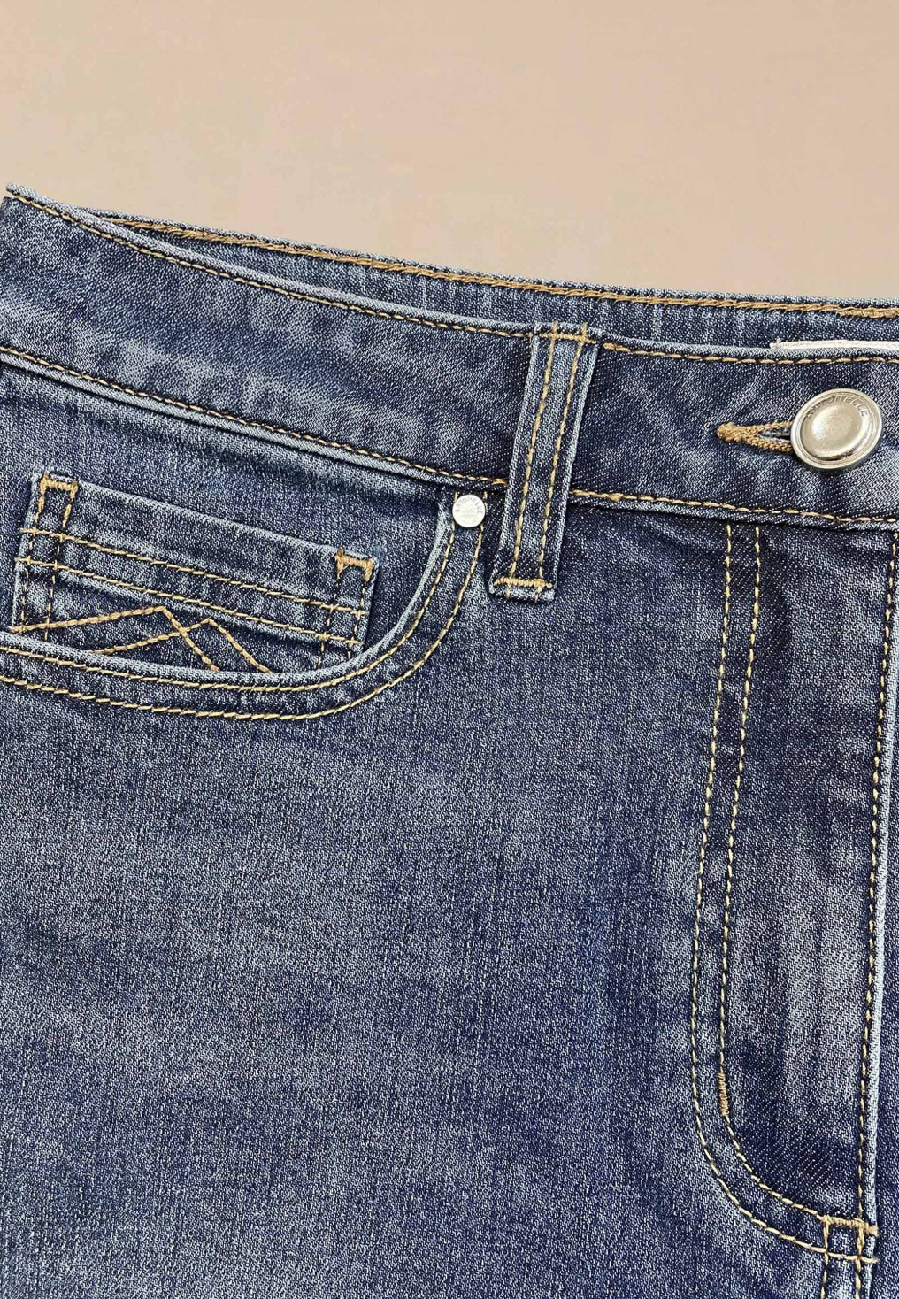 - Coloris jean bleu denim avec coutures contrastées