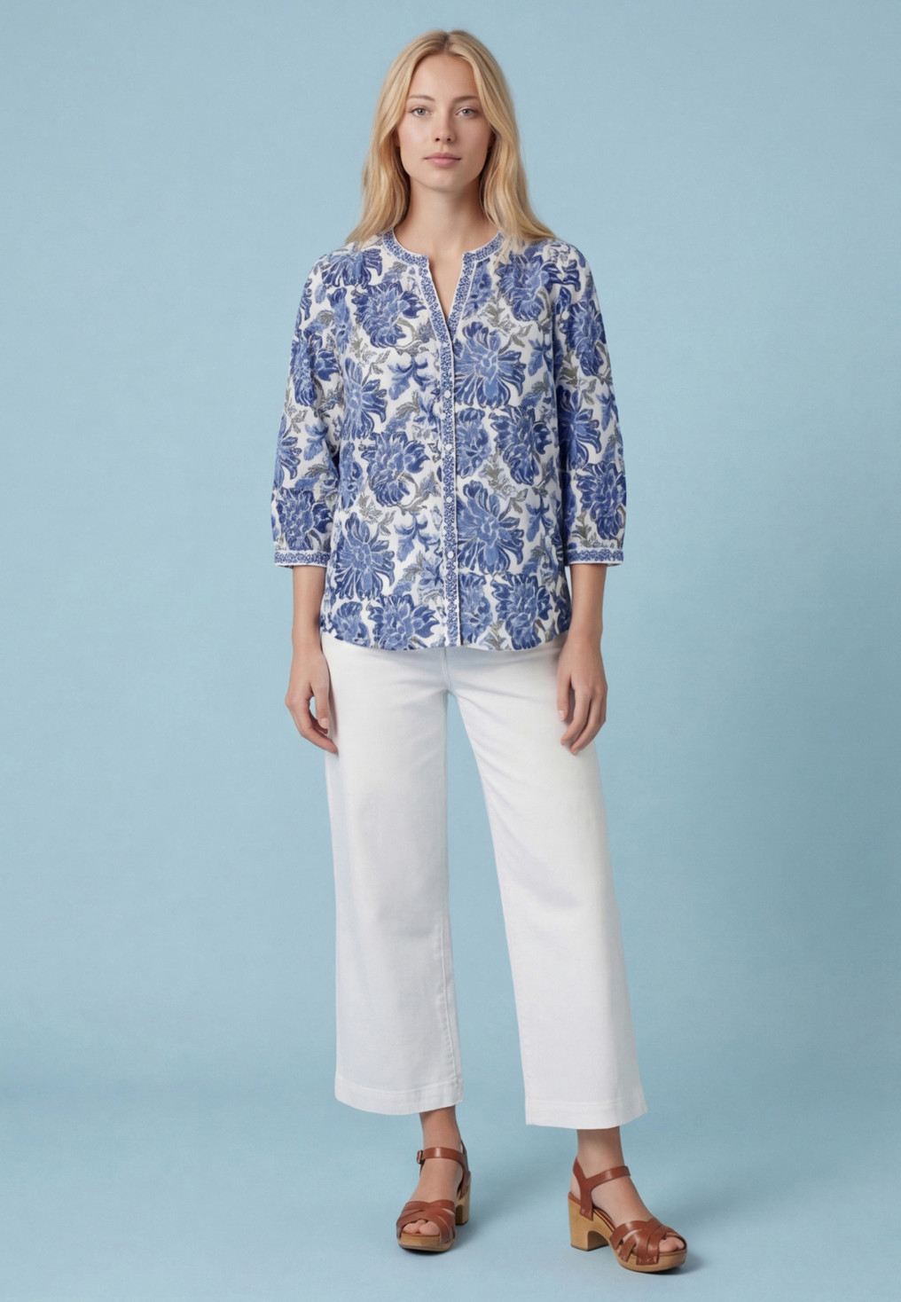 - Manches 3/4 amples, poignet fermé par un bouton