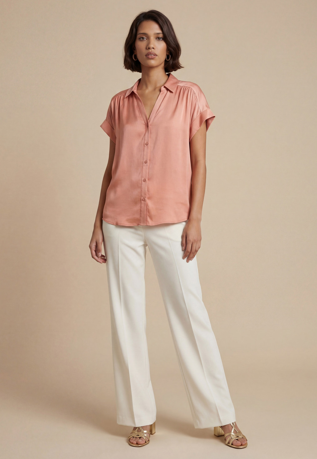 - Manches courtes à même, revers fixé