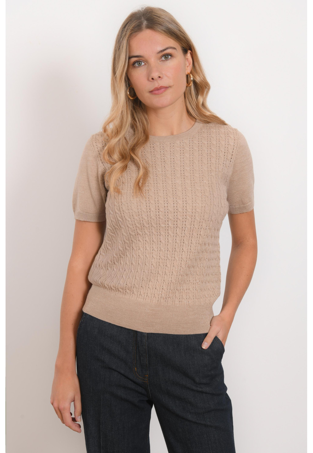 PULL MANCHES COURTES - ROAN - BEIGE CHINE/LUREX