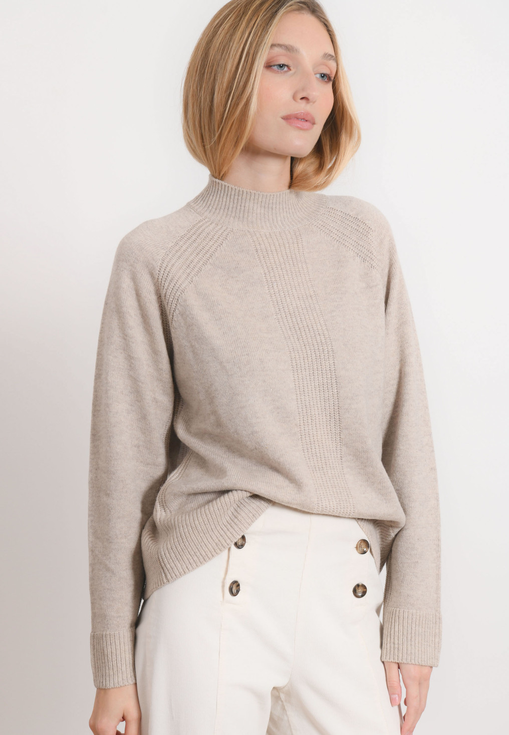 - Détail du tricotage en côtes milieu devant, le long des emmanchures et des manches