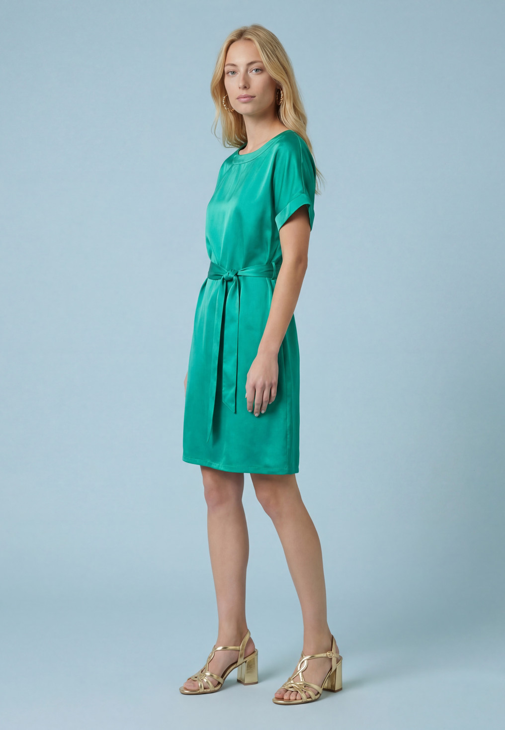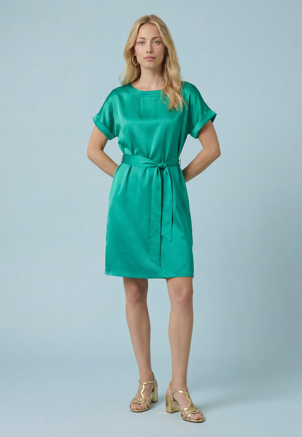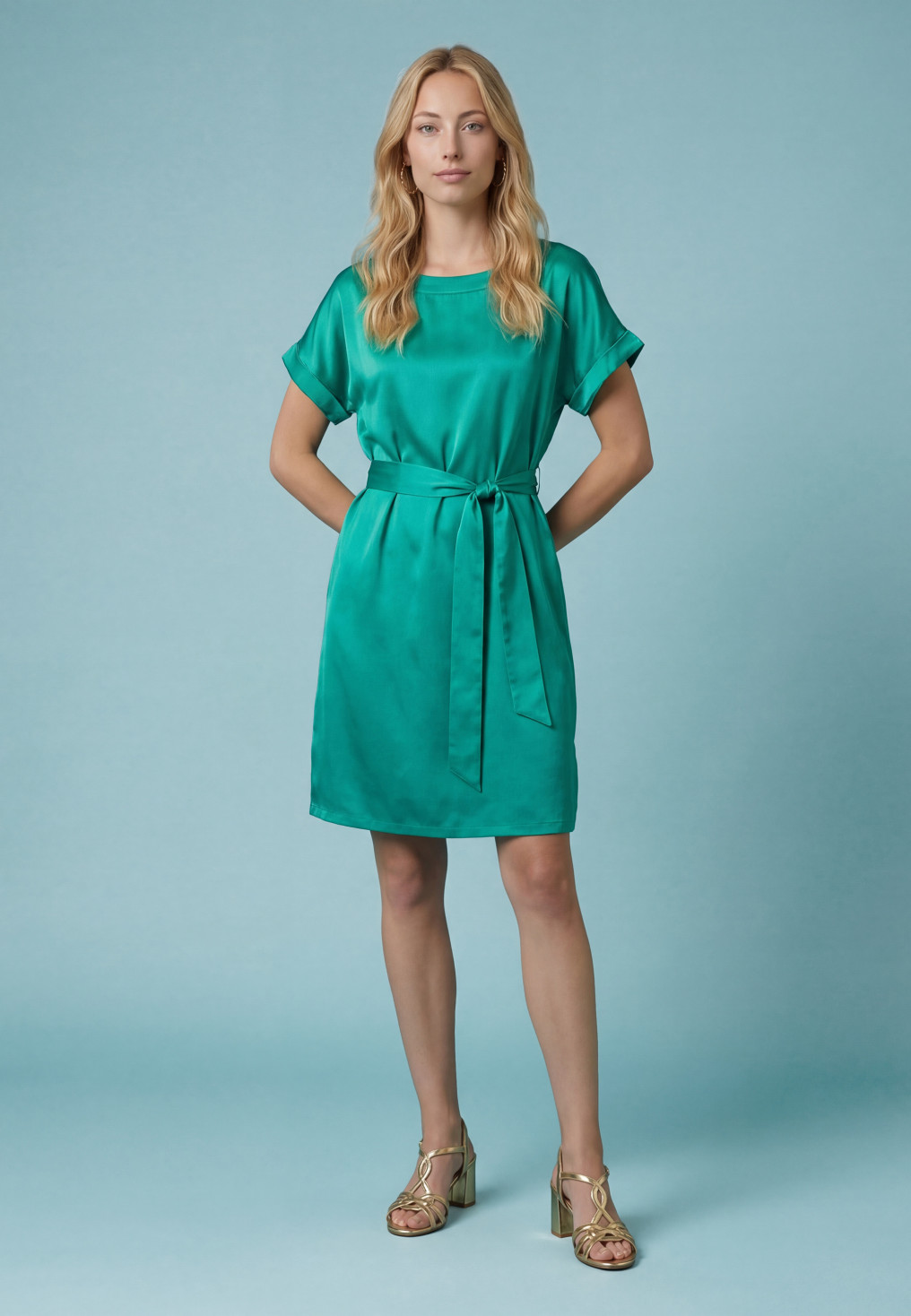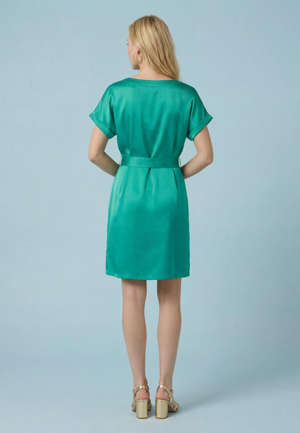 - Robe courte en satin vert émeraude