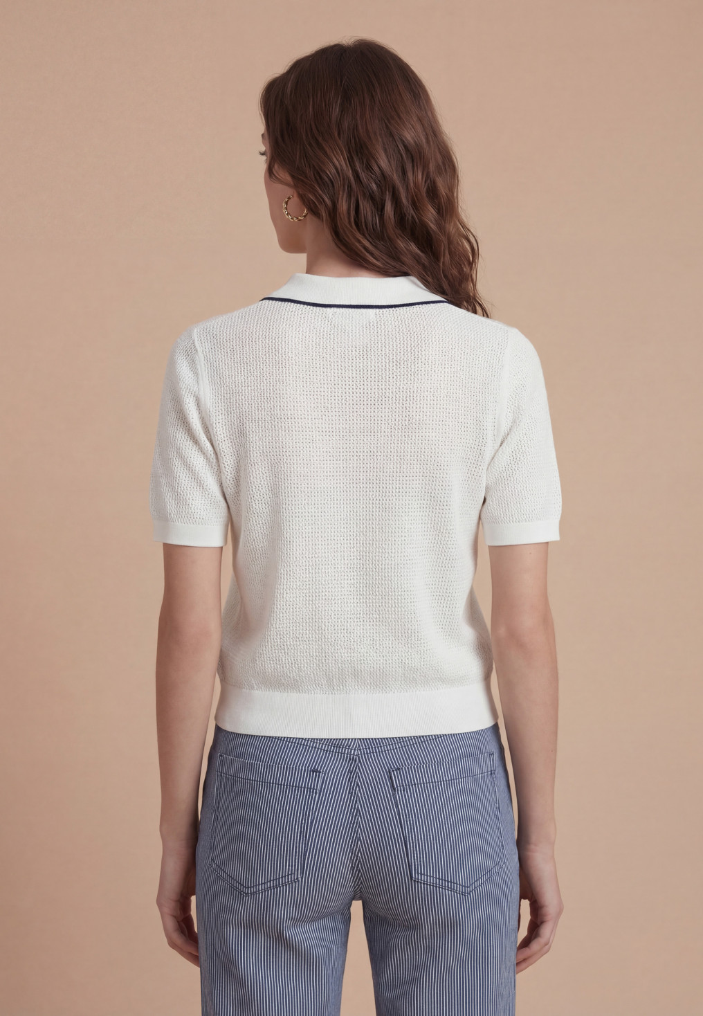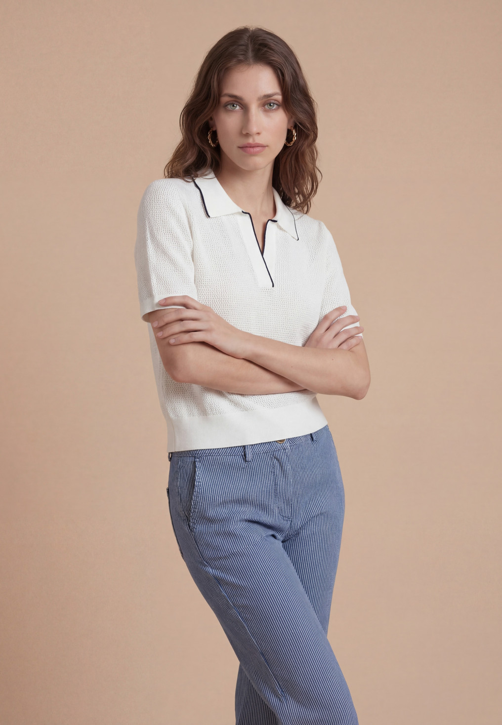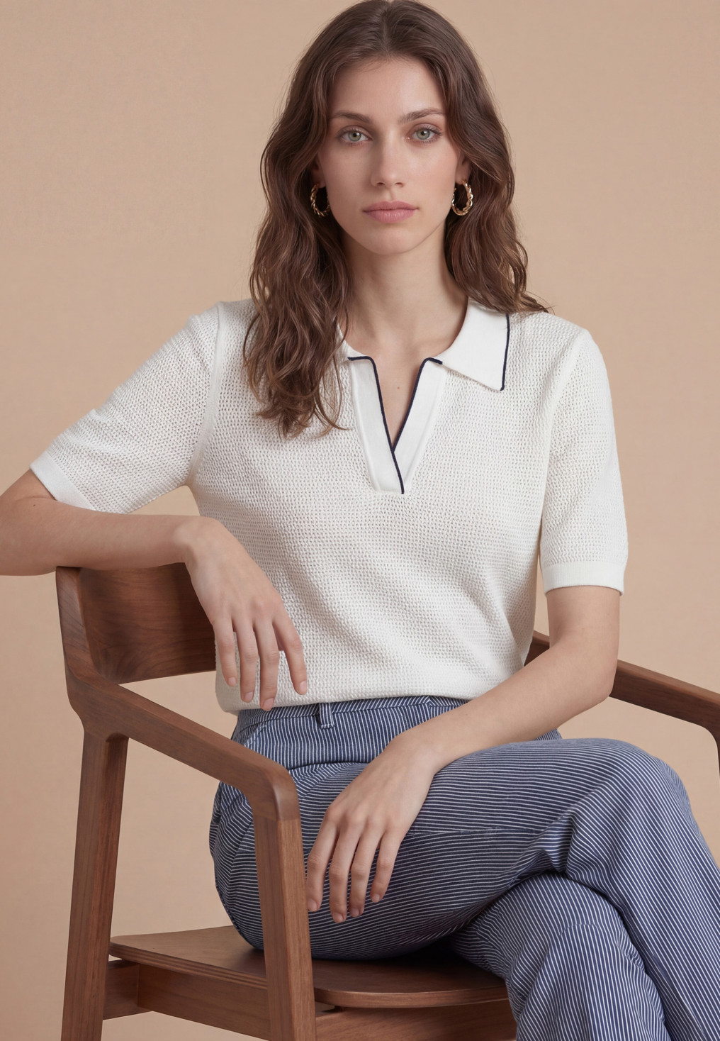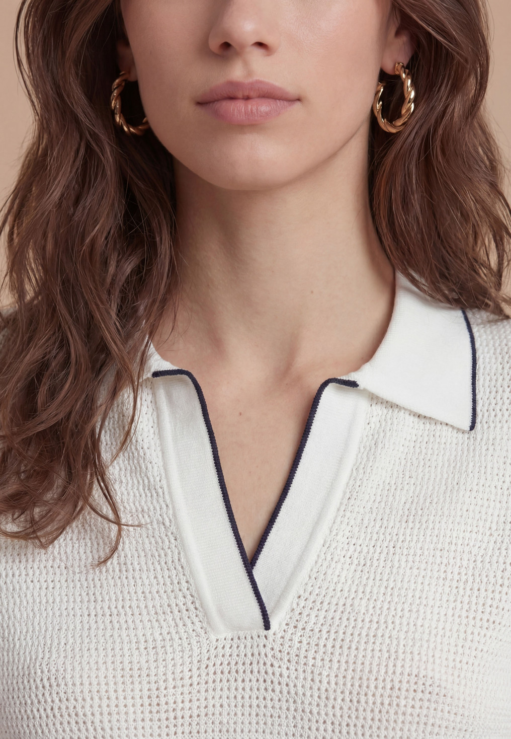 - Col avec ouverture V, souligné d'une finition en coloris contrasté